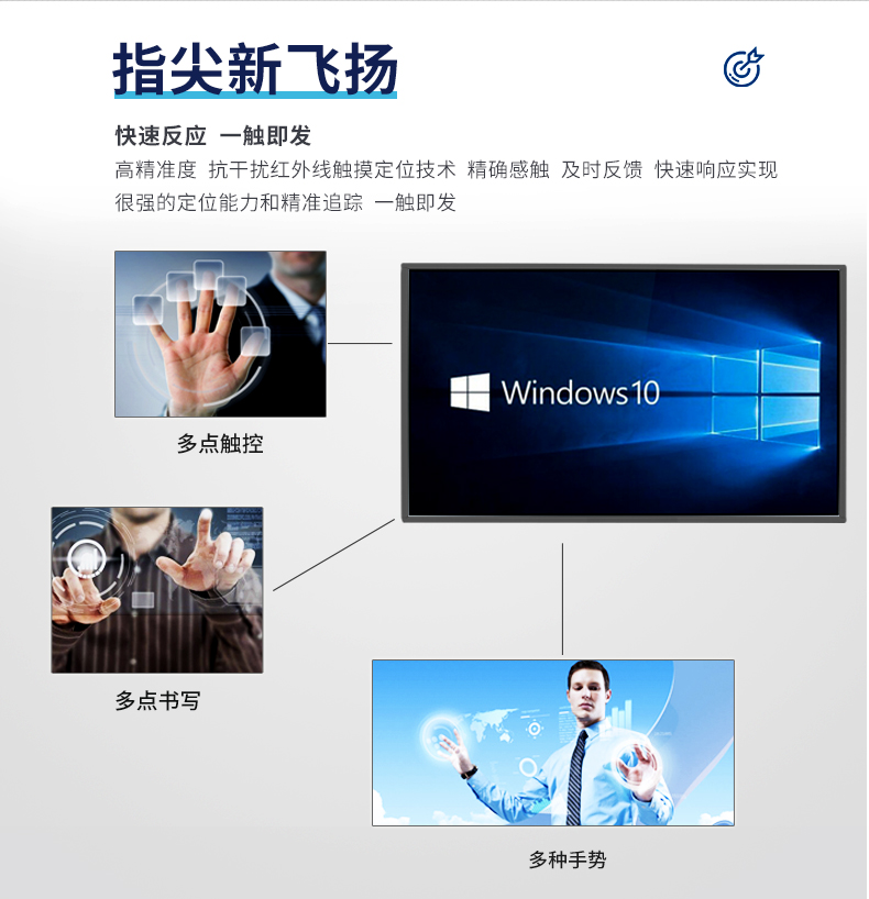 觸控一體機(jī)是一種定位設(shè)備,用戶可以直接用手向計(jì)算機(jī)顯示器表面輸入坐標(biāo)信息。它和鼠標(biāo)、鍵盤一樣,是一種輸入設(shè)備。它采用的觸摸屏具有堅(jiān)固耐用、反應(yīng)速度快、節(jié)省空間、易于交流等許多優(yōu)點(diǎn)。利用這種技術(shù),只要用手指輕輕地指碰計(jì)算機(jī)顯示屏上的圖符或文字就能實(shí)現(xiàn)對(duì)主機(jī)操作,從而使人機(jī)交互更為直接了當(dāng)。