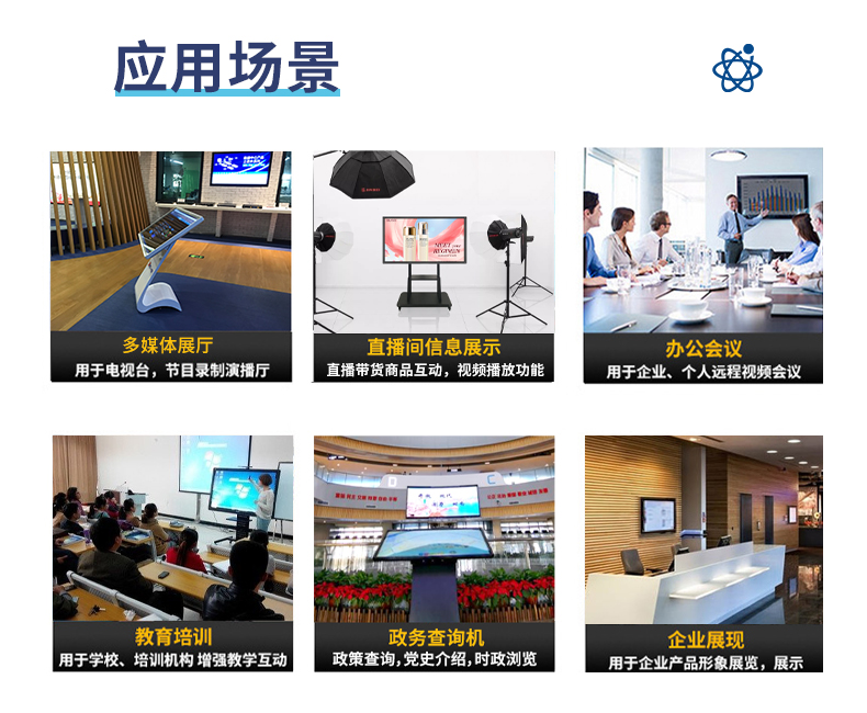 觸控一體機(jī)的應(yīng)用范圍非常廣闊,主要有公共信息的查詢,如電信局、稅務(wù)局、銀行、電力等部門的業(yè)務(wù)查詢;城市街頭的信息查詢;此外還可廣泛應(yīng)用于企業(yè)辦公、工業(yè)控制、軍事電子沙盤、電子游戲、點(diǎn)歌點(diǎn)菜、多媒體教學(xué)、房地產(chǎn)預(yù)售等。