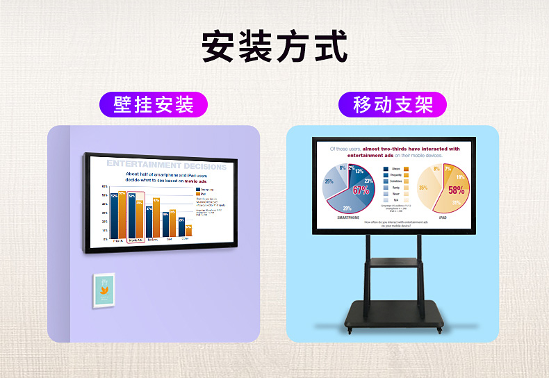 結(jié)構(gòu)設計適合嵌入式(組合幕墻安裝方式)、壁掛式、吊裝式、桌面支架方式安裝
