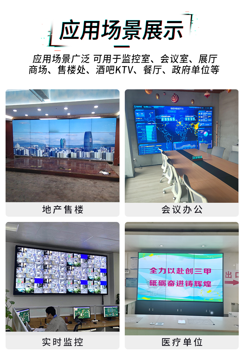 液晶大屏幕拼接顯示系統(tǒng)目前主要應(yīng)用于軍事指揮控制中心,政府機(jī)關(guān)、企業(yè)多媒體視頻會(huì)議顯示系統(tǒng),交通管理指揮中心,城市管理應(yīng)急指揮中心,生產(chǎn)調(diào)度控制中心,礦業(yè)安全生產(chǎn)監(jiān)控中心,商場(chǎng)、酒店、通訊信息顯示系統(tǒng),金融證劵信息顯示系統(tǒng),公安消防、氣象、海事防汛指揮中心、品牌專賣(mài)店形象展示系統(tǒng)等領(lǐng)域。