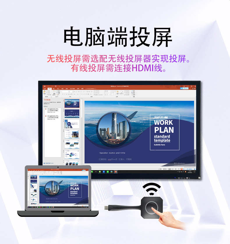.一鍵無線投屏(配電腦無線屏器,即可無線投屏)