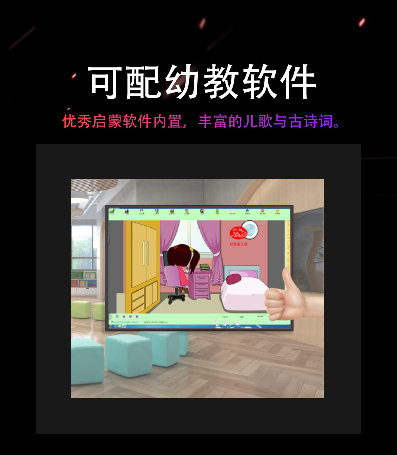 支持遙控器代替鍵盤,實(shí)現(xiàn)F1~F12按鍵功能,遙控電視電源開機(jī)功能支持觸摸菜單,實(shí)現(xiàn)返回鍵、菜單操作、任務(wù)預(yù)覽、通道切換、音量調(diào)整、快捷電子白板操作等功能