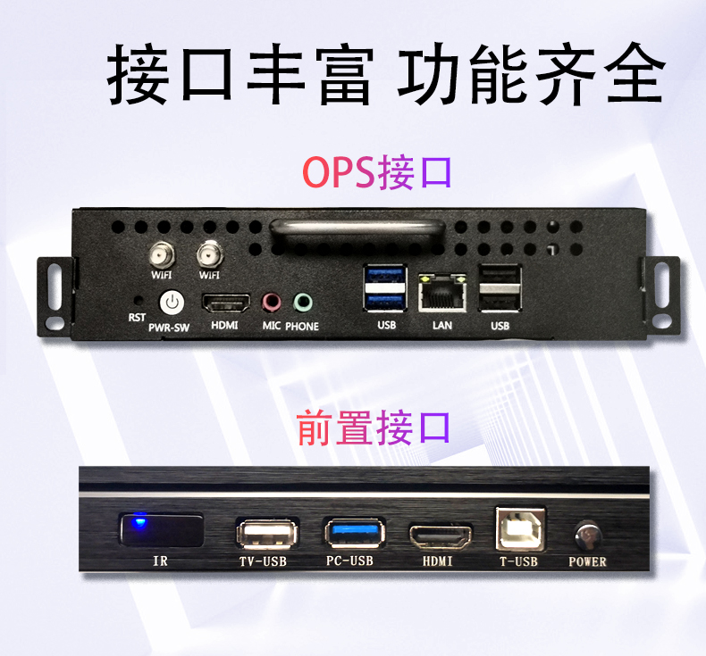 6 路 USB 、1 路 RJ45 網(wǎng)絡(luò)接口、1 路 HDMI、1 路 LINE 輸出、1 路 MIC 輸入、支持wifi;